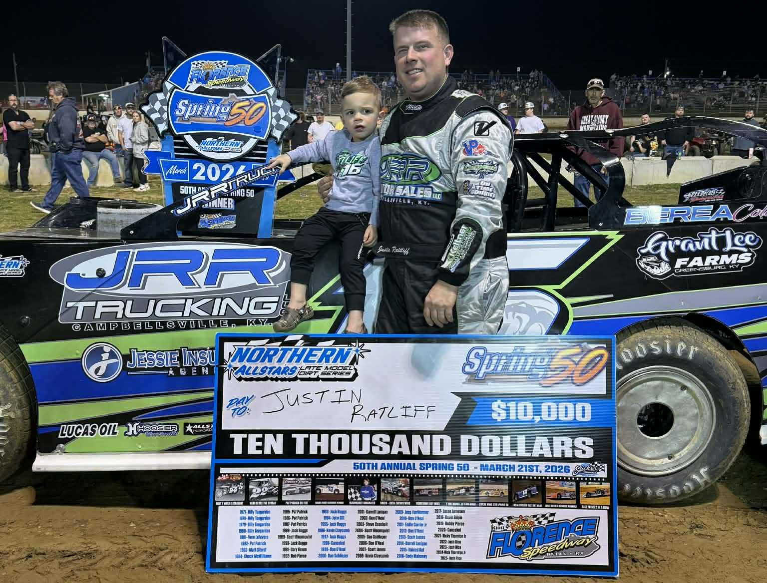 Rattliff took home $10,000 for his first Super Late Model victory in 10 years as the 2007 Lucas Oil Late Model Dirt Series Rookie of the year won before the largest crowd in the 50-year history of the Spring 50.